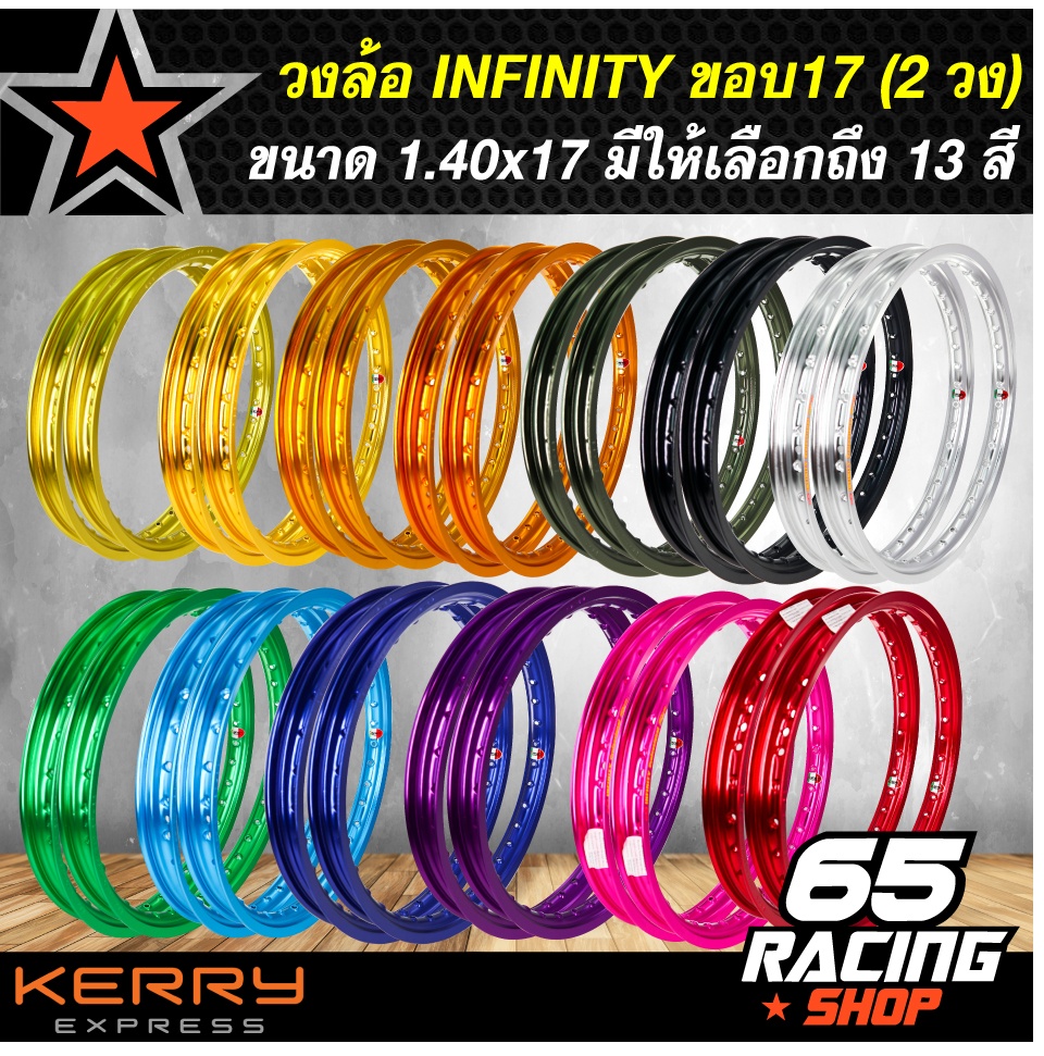 เพื่อนแนะนำ วงล้อ ล้อมอไซค์ขอบ17 (1คู่)ยี่ห้อ INFINITY อย่างดีมีให้เลือกถึง13 สี ขนาด1.40 x 17 ล้อมีเนียมอย่างดี (2วง)(เลือกสีด้านใน) แถมฟรี