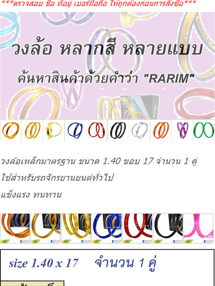 ขอบล้อ RARIM ดีไหม หากกำลังจะหาข้อมูล เดือนนี้เท่านั้น (D) วงล้อ เหล็ก ขนาด 1.40 ขอบ 17 จำนวน 1 คู่ (ล้อเหล็ก ล้อขอบ17 ล้อมอไซ ล้อมอไซค์ ล้อมอเตอร์ไซค์ ล้อมอเตอร์ไซค์17 ล้อมอไซค์17) ดีไหม ส่วนลดในการซื้อสูงสุด ที่มีบริการจัดส่งสินค้าฟรี ถึงบ้านคุณ ส่งเร็ว ได้รับสินค้าเร็ว